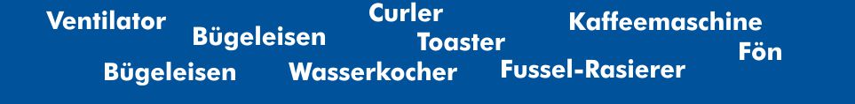 Wir führen für Sie eine Auswahl der wichtigsten Altagsgeräten wie eben der Kaffeemaschine, Wasserkocher, Toaster, Mixer oder Curler und Fön.